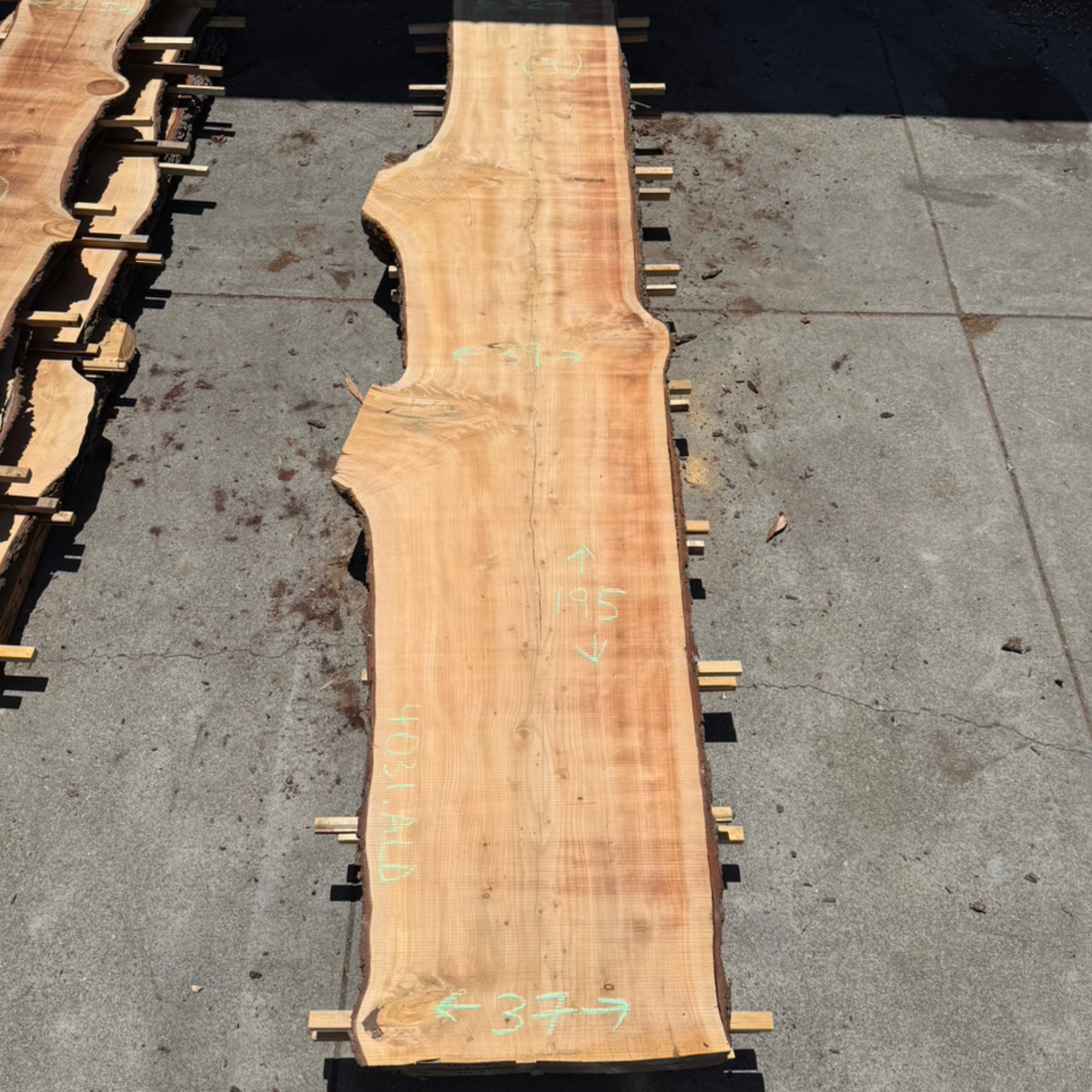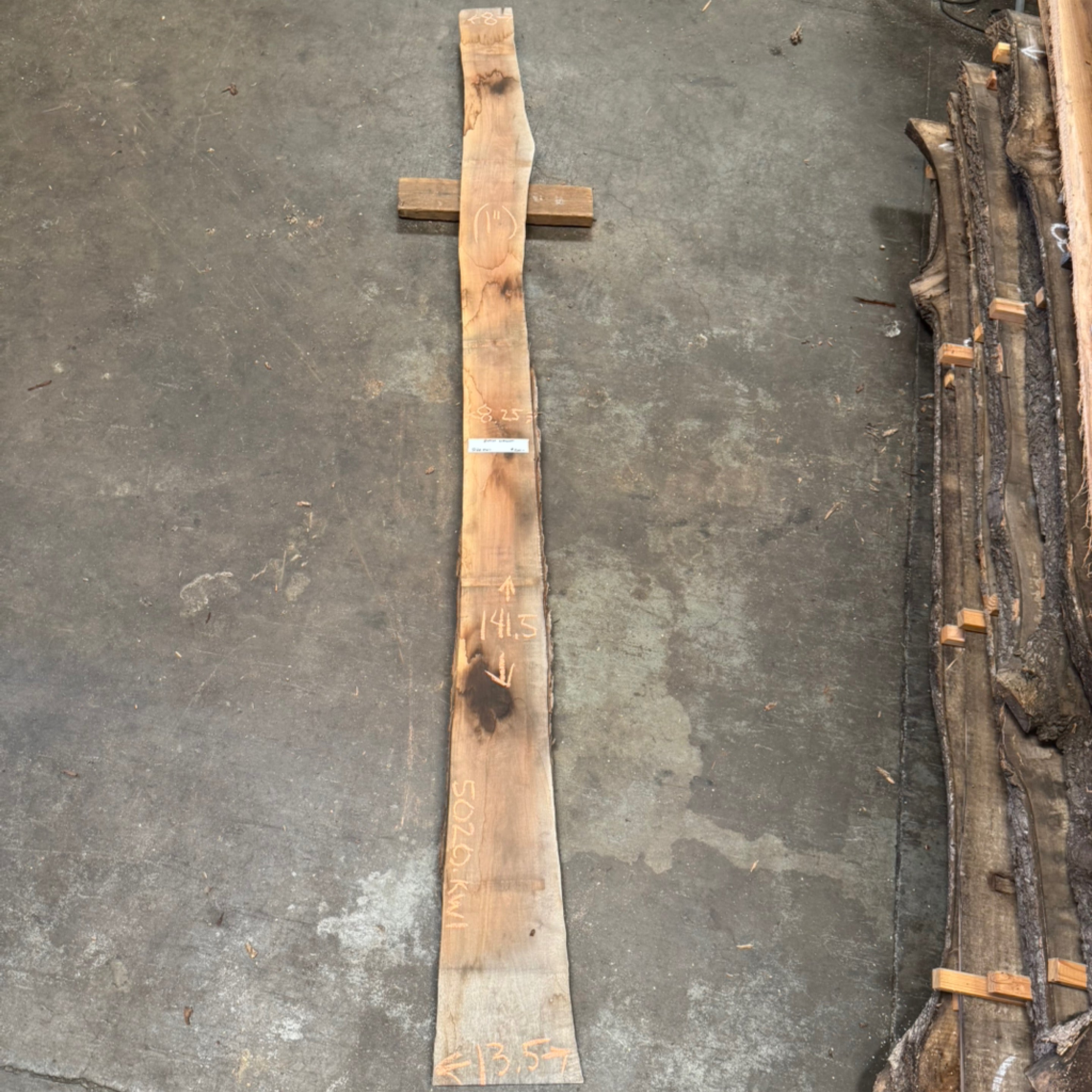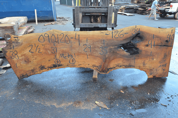Sycamore slab from Goby Walnut measuring 2.5" thick x 38"-31"-29"-35"-34"-41"-40" wide x 126" long