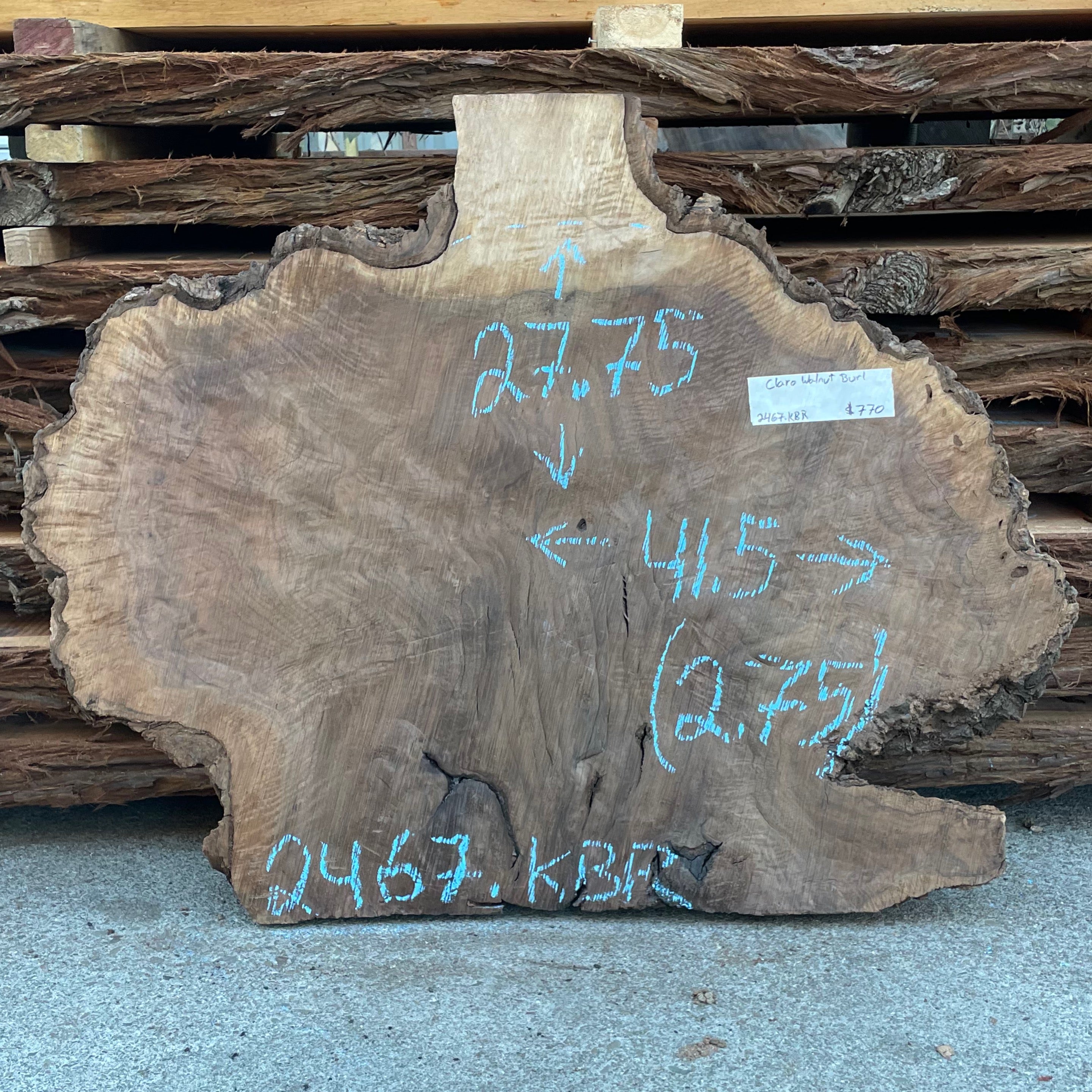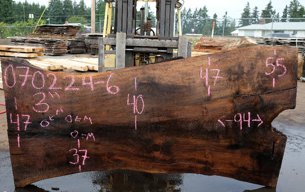 Bastogne slab from Goby Walnut measuring 3" thick x 47"-37"-40"-47"-55" wide x 94" long