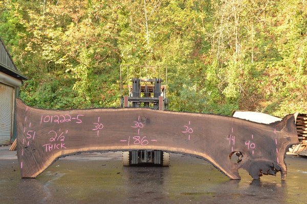 Black Walnut slab from Goby Walnut measuring 2.5" thick x 51"-30"-30"-30"-44"-40" wide x 186" long
