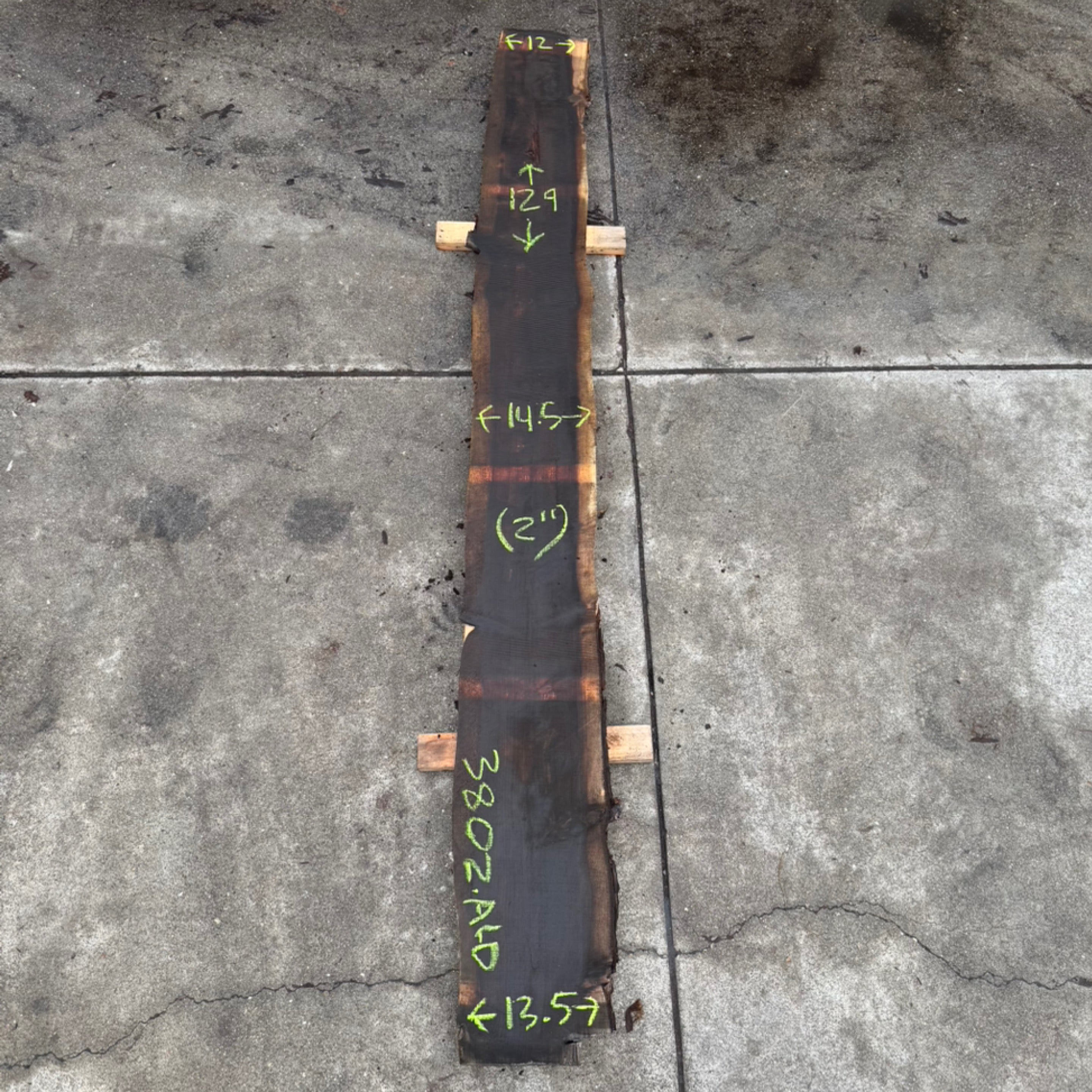 Giant Sequoia slab from Peroba Reclaimed measuring 2" thick x 12"-14.5"-13.5" wide x 129" long