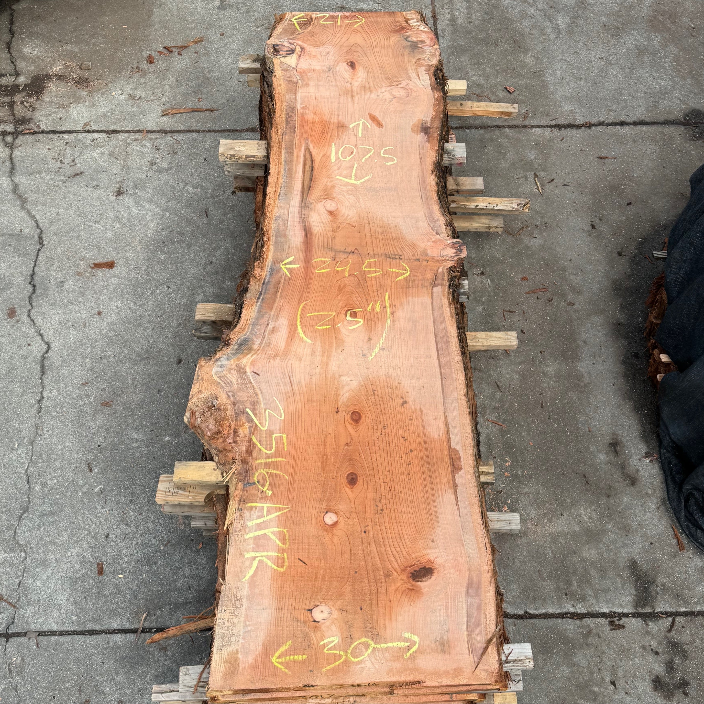 Cedar slab from WoodSlabs.com measuring 1.80" thick x 17"-26" wide x 136" long