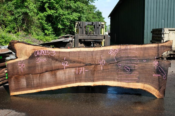 Black Walnut slab from Goby Walnut measuring 3" thick x 56"-42"-40"-58" wide x 171" long