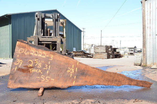 Black Walnut slab from Goby Walnut measuring 2.625" thick x 39"-31"-23" wide x 55" long