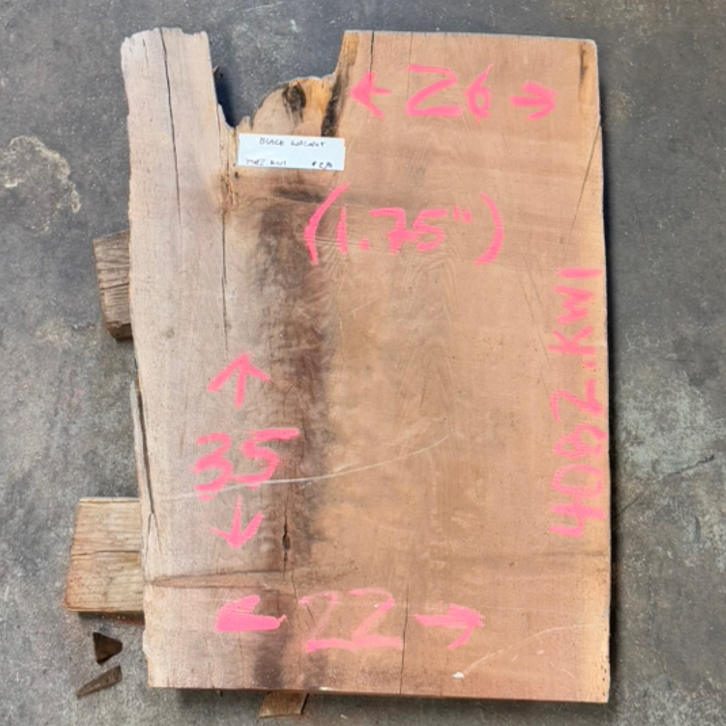Black Walnut slab from Peroba Reclaimed measuring 1.75" thick x 26"-22" wide x 35" long
