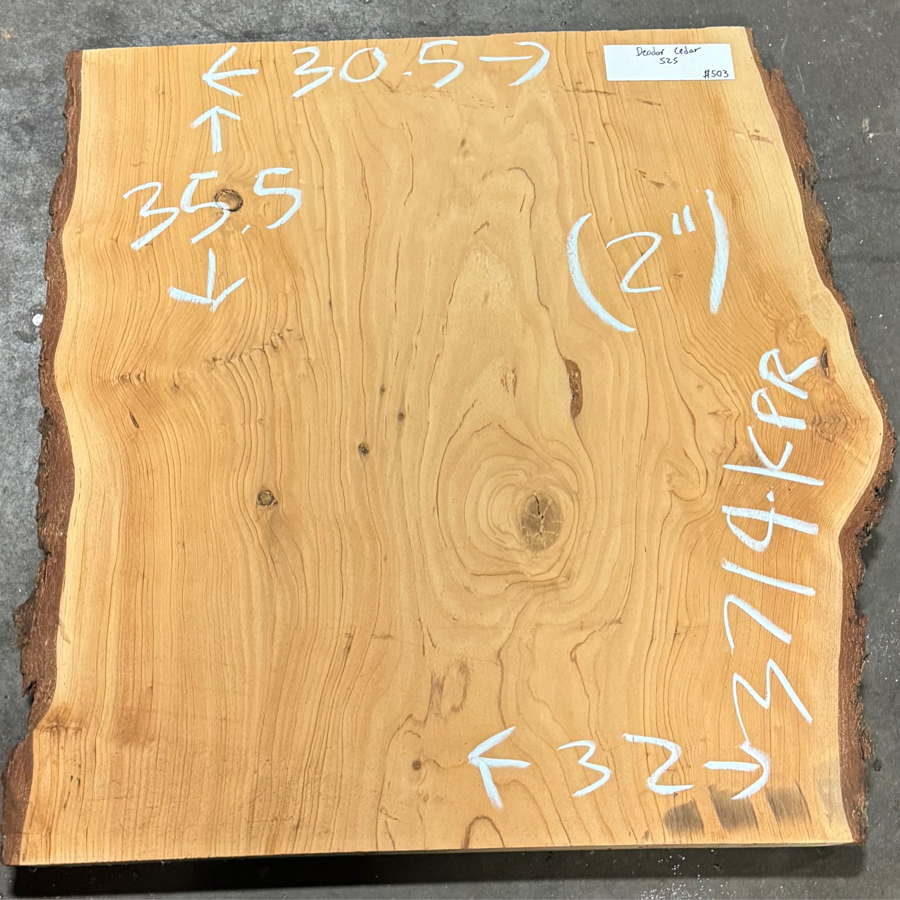 Cedar slab from Peroba Reclaimed measuring 2" thick x 30.5"-32" wide x 35.5" long