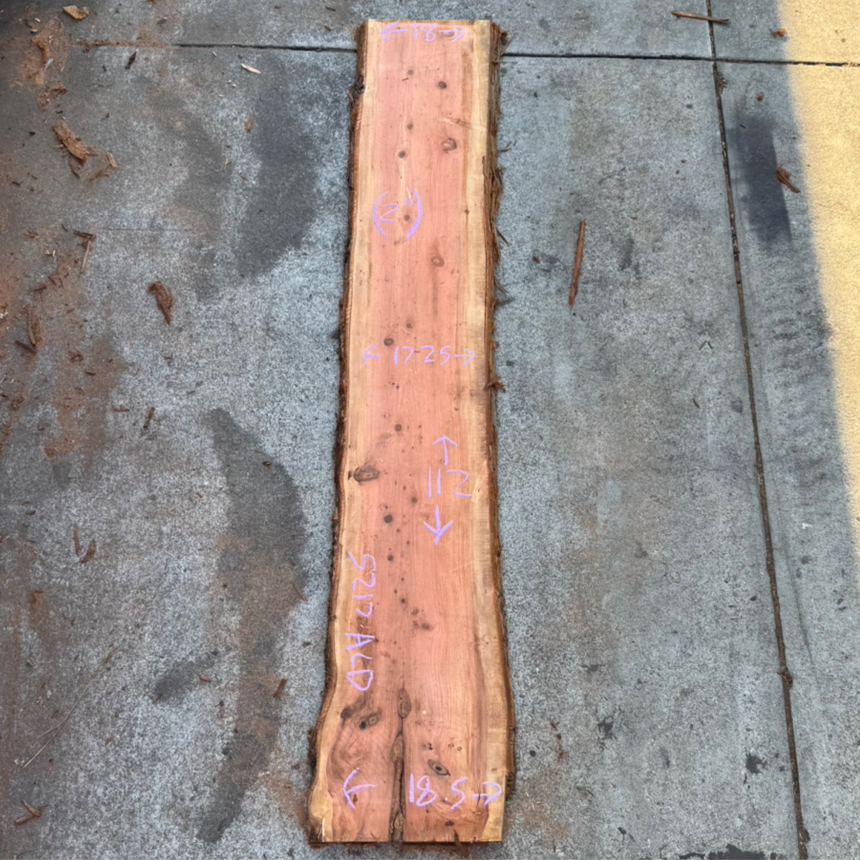 Redwood slab from Peroba Reclaimed measuring 2" thick x 18"-17.25"-18.5" wide x 112" long