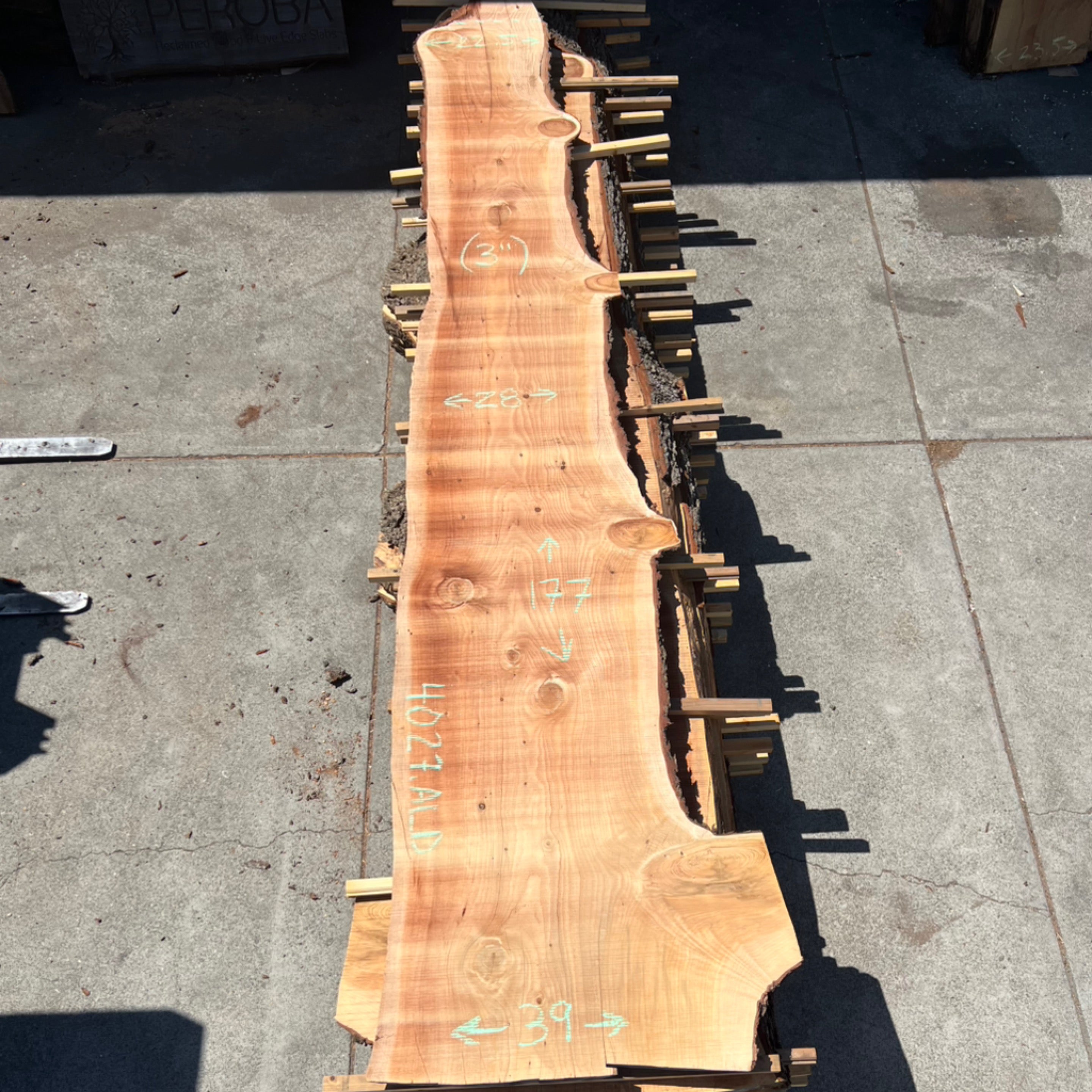 Elm slab from Peroba Reclaimed measuring 2.5" thick x 24"-33"-30.5" wide x 147" long