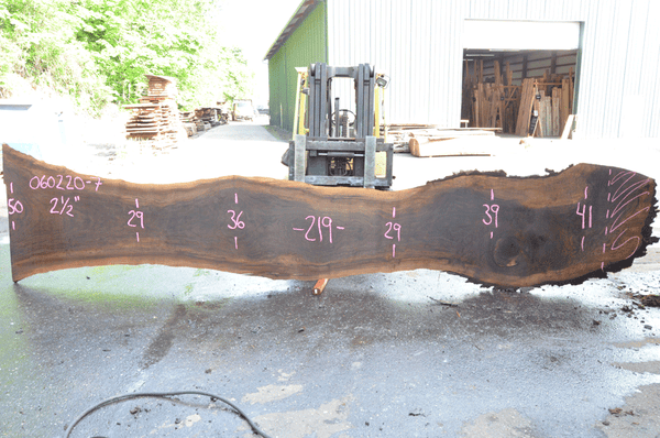 Black Walnut slab from Goby Walnut measuring 2.5" thick x 50"-29"-36"-29"-39"-41" wide x 219" long