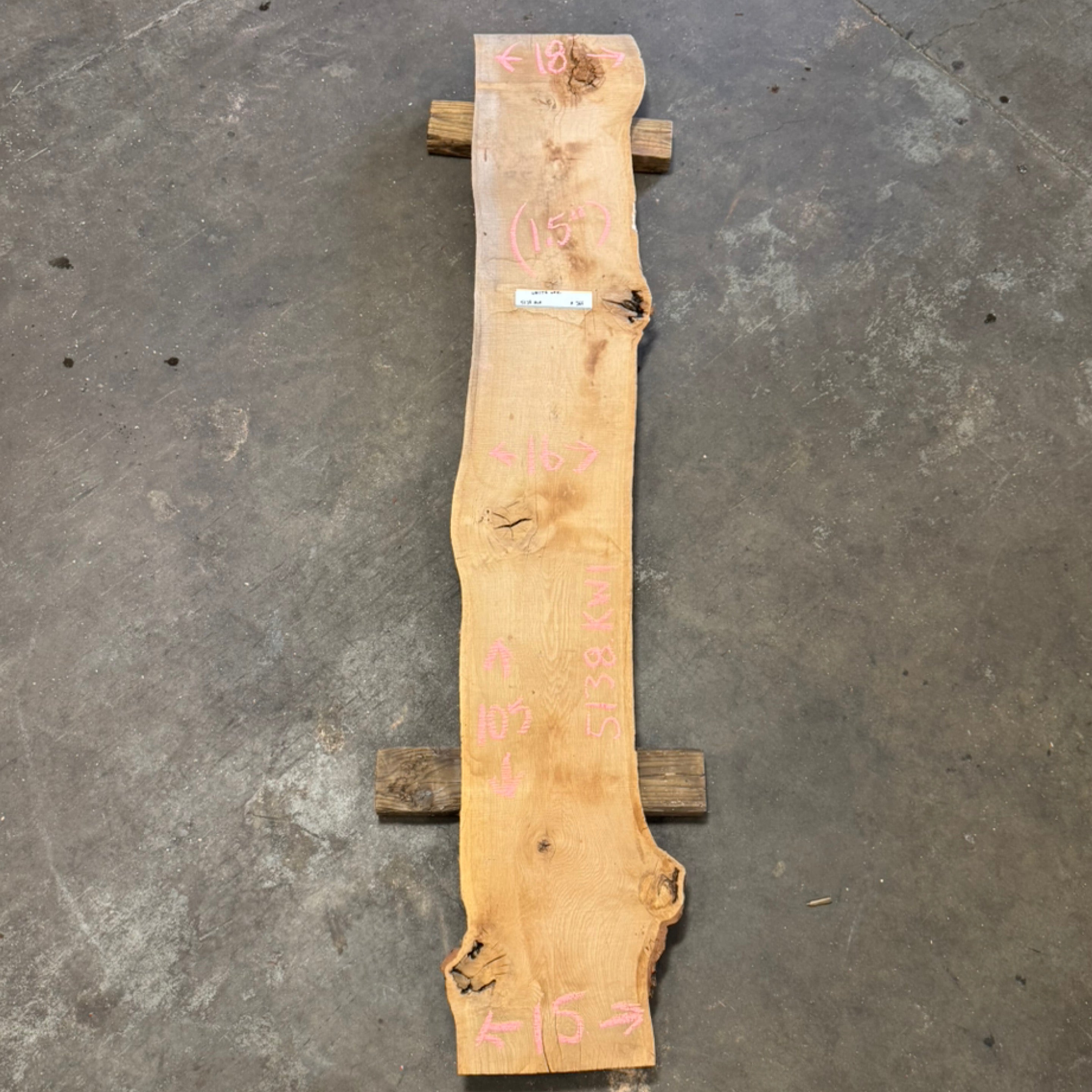 White Oak slab from Peroba Reclaimed measuring 1.5" thick x 18"-16"-15" wide x 105" long