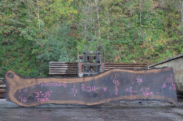 Black Walnut slab from Goby Walnut measuring 3" thick x 42"-54"-85" wide x 112" long