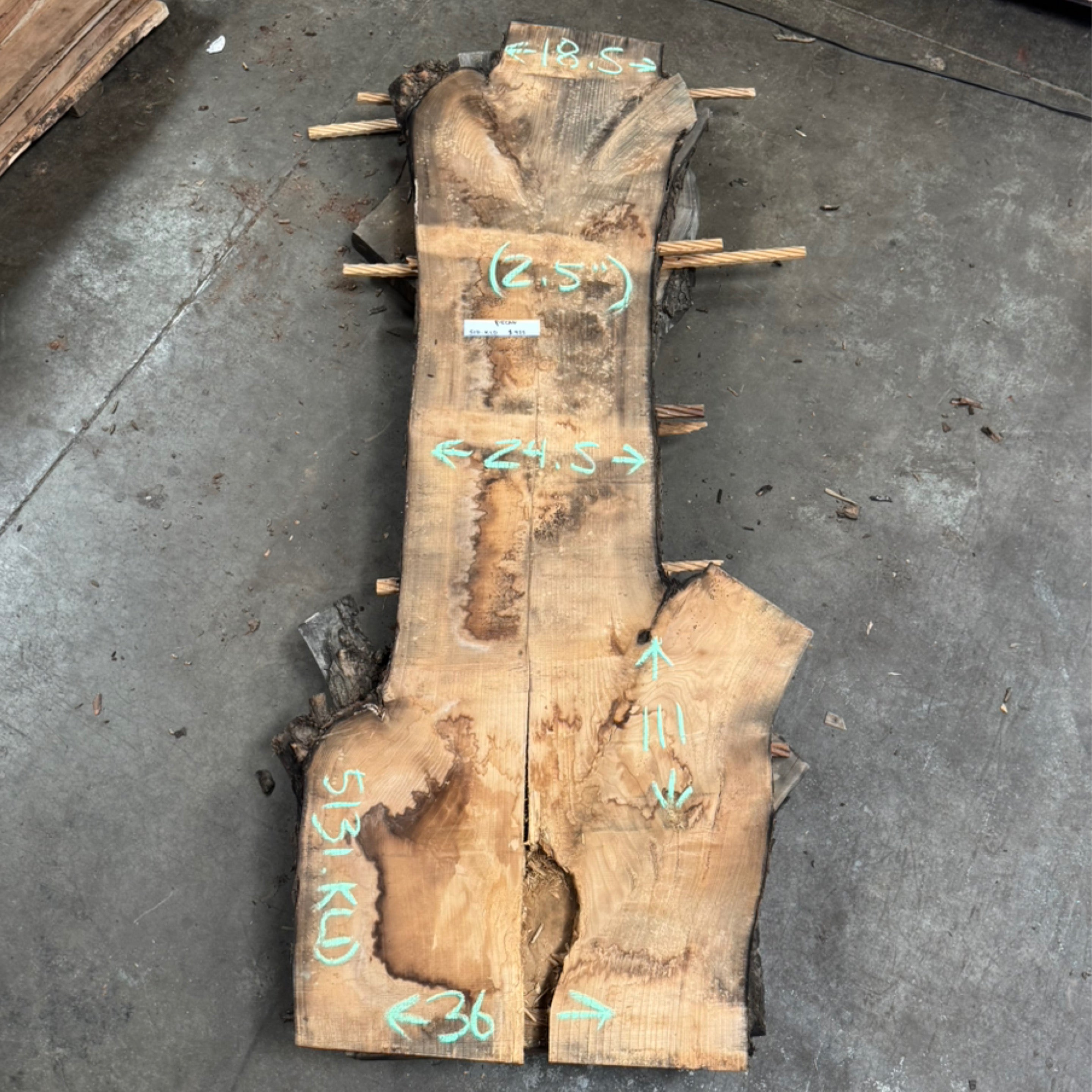 Oregon White Oak slab from Goby Walnut measuring 2.25" thick x 34"-41"-31"-32"-36"-35"-43" wide x 189" long