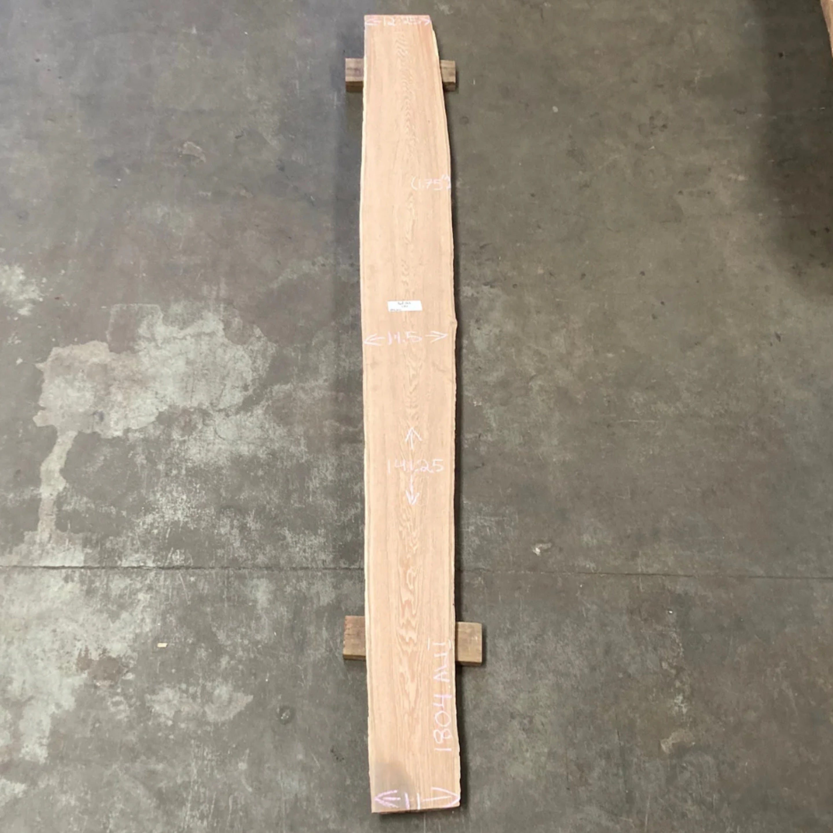 Red Oak slab from Peroba Reclaimed measuring 1.75" thick x 11"-14.5"-12.25" wide x 141.25" long