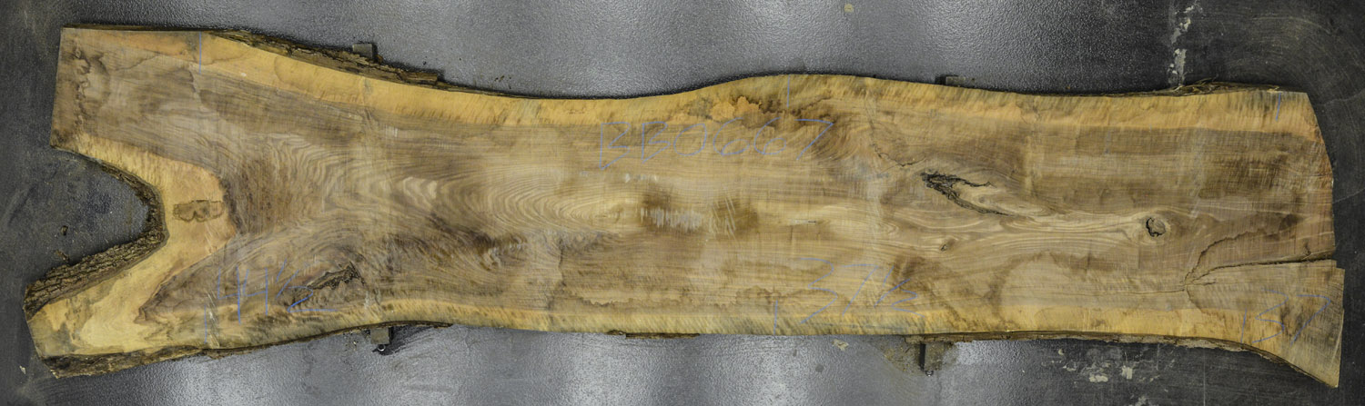 English Elm slab from Berkshire Products measuring 1-5/16" thick x 24"-21"-21" wide x 14' long