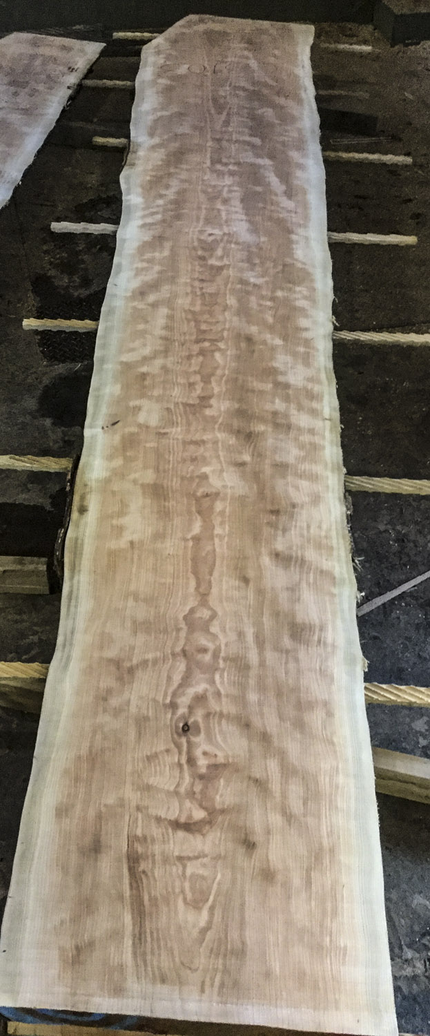 Maple (Big Leaf) slab from Berkshire Products measuring 2-1/8" thick x 34"-43"-46" wide x 9' 5" long