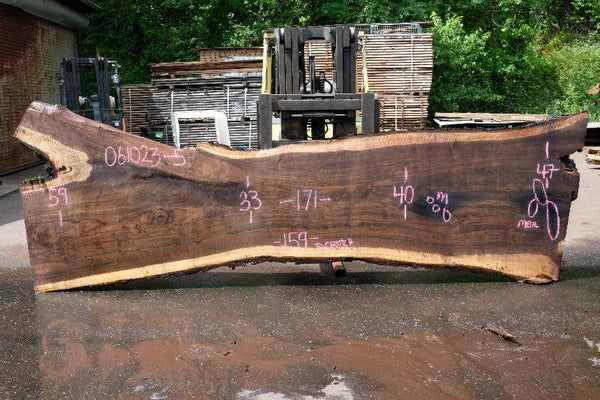 Black Walnut slab from Goby Walnut measuring 3.25" thick x 59"-33"-40"-47" wide x 159"-171" long