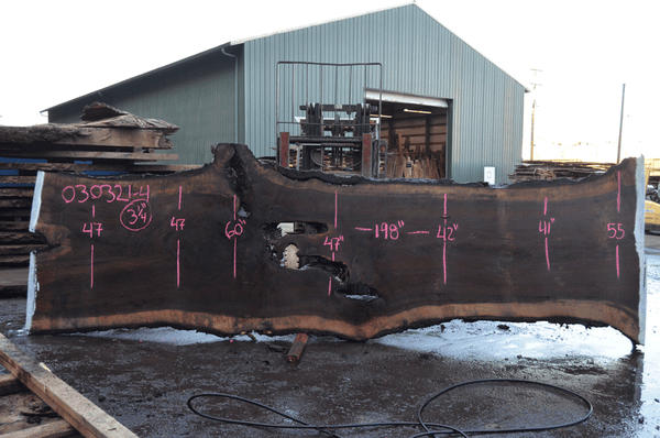 Black Walnut slab from Goby Walnut measuring 3.25" thick x 47"-47"-60"-47"-42"-41"-55" wide x 198" long