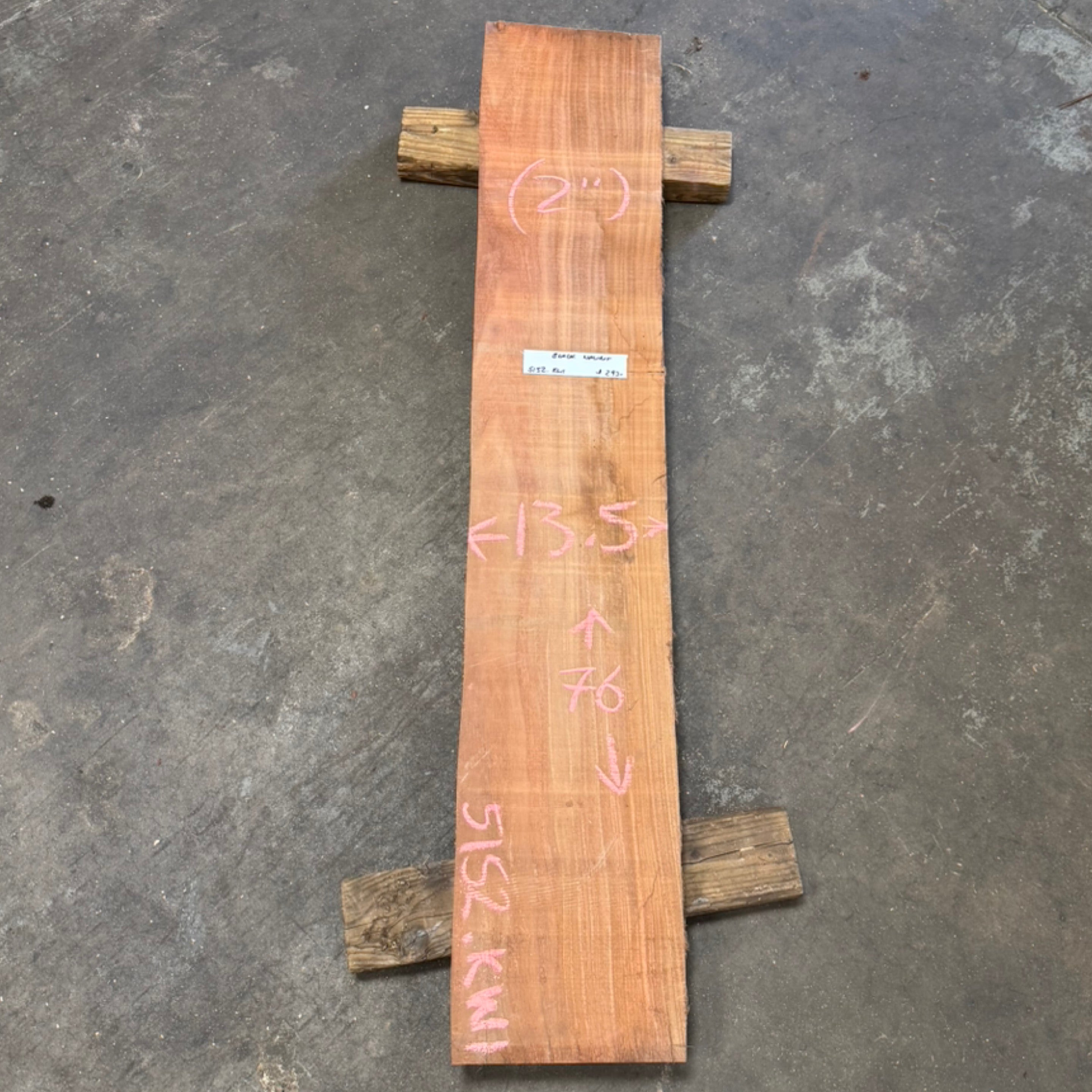 Black Walnut slab from Peroba Reclaimed measuring 2" thick x 13.5" wide x 76" long