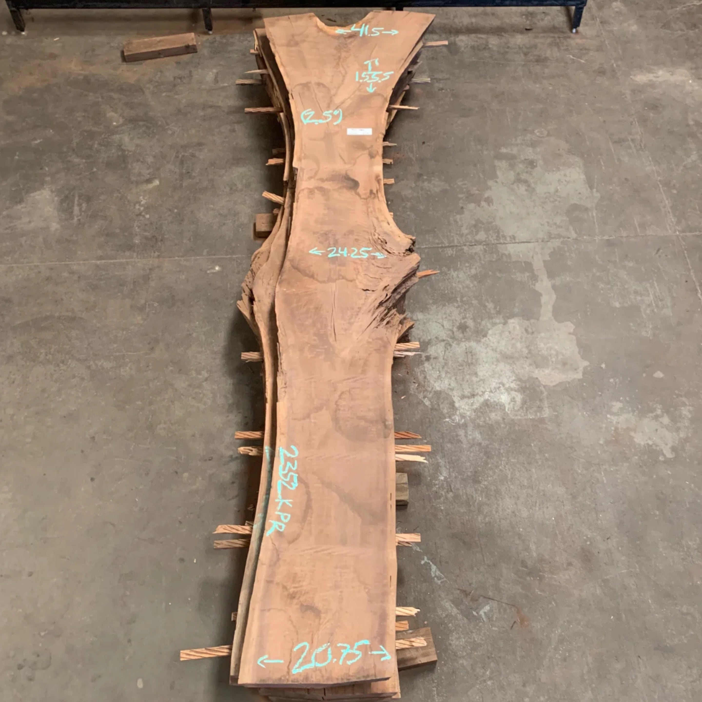 Black Walnut slab from Peroba Reclaimed measuring 2.5" thick x 20.75"-24.25"-41.5" wide x 155.5" long