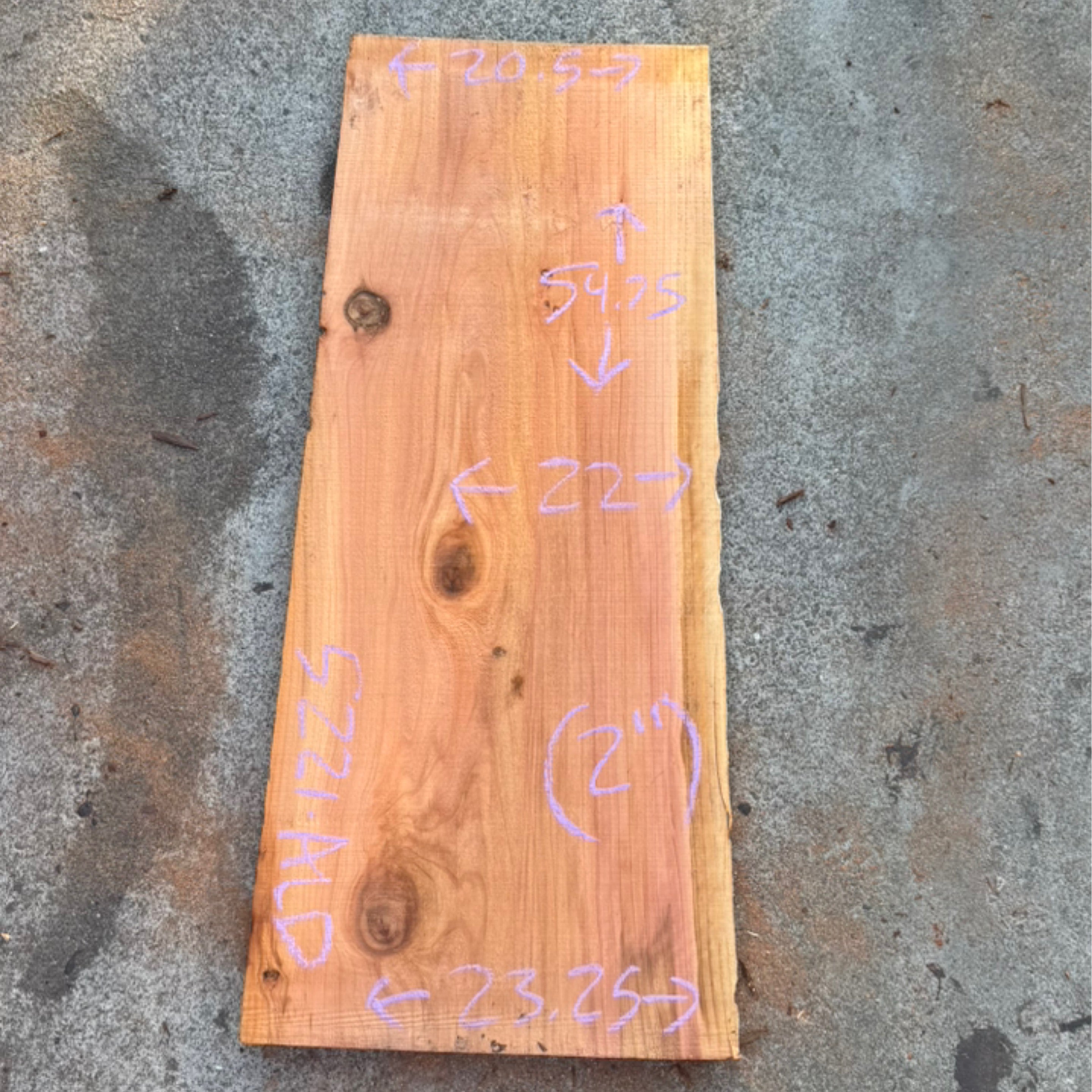 Redwood slab from Peroba Reclaimed measuring 2" thick x 20.5"-22"-23.25" wide x 54.75" long