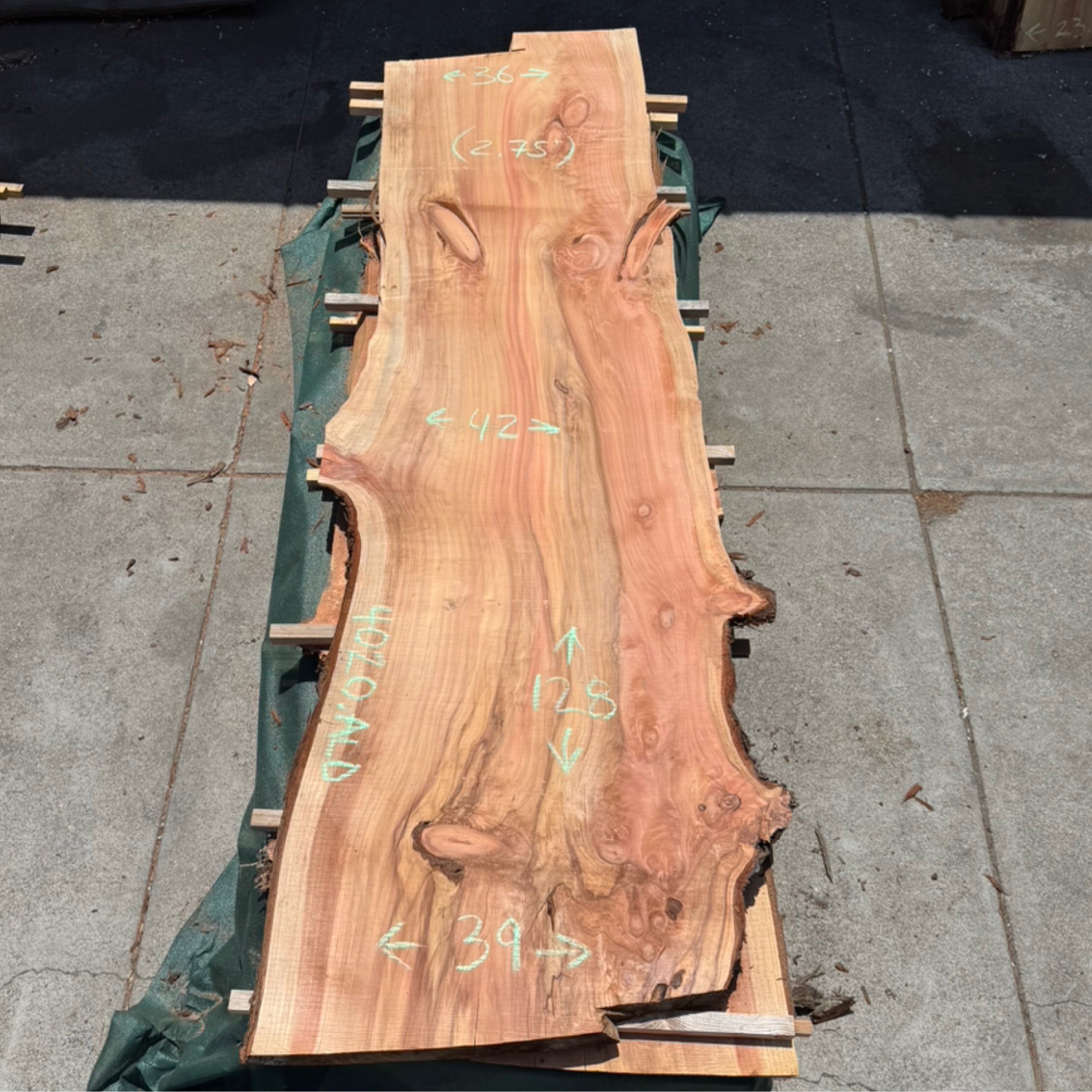 Redwood slab from Peroba Reclaimed measuring 2.75" thick x 36"-42"-39" wide x 128" long