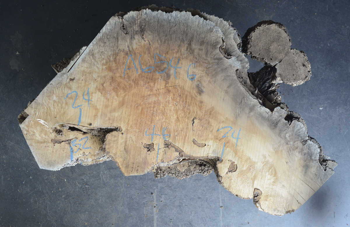 English Elm slab from Berkshire Products measuring 1-1/4" thick x 49"-37"-30" wide x 7' 10" long