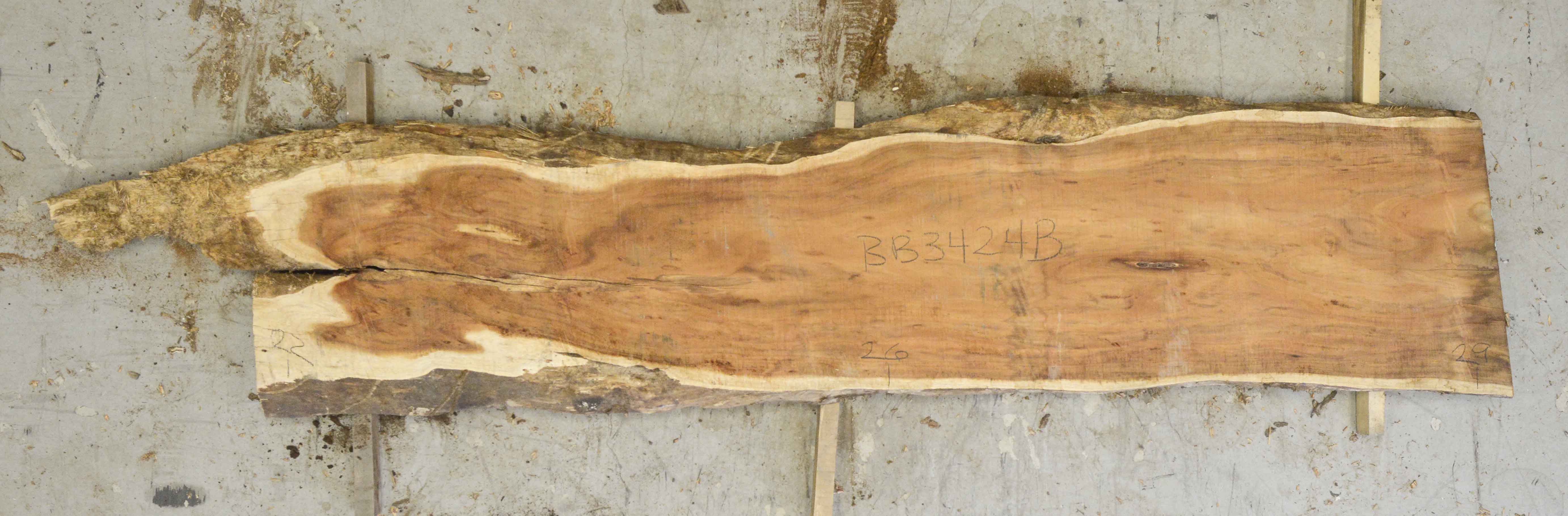 Beefwood slab from Berkshire Products measuring 1-1/4" thick x 33"-29"-31" wide x 8' 1" long