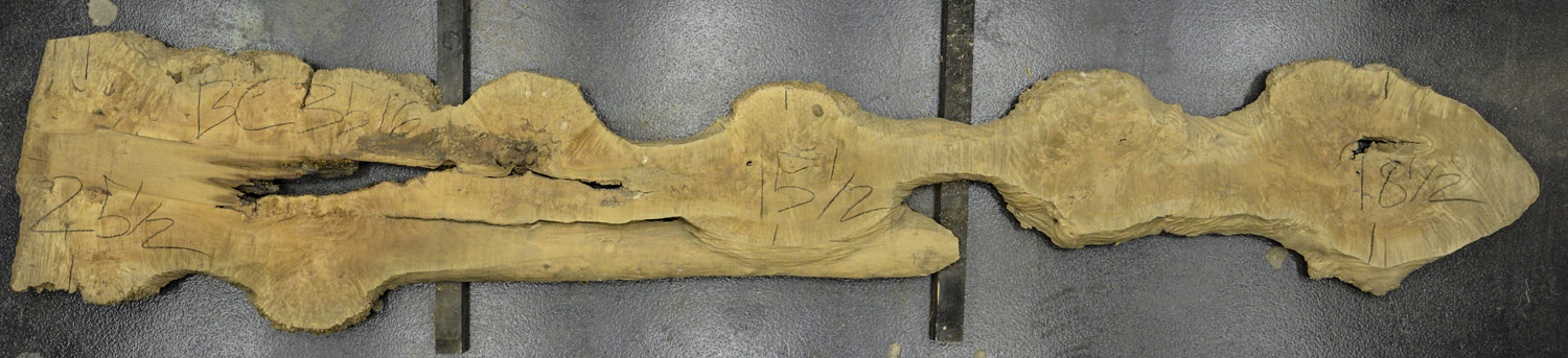 English Elm slab from Berkshire Products measuring 2-1/8" thick x 25"-25"-26" wide x 8' 7" long