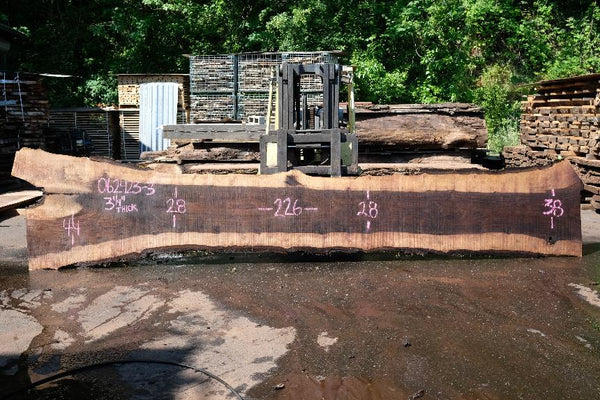 Black Walnut slab from Goby Walnut measuring 3.25" thick x 44"-28"-28"-38" wide x 226" long