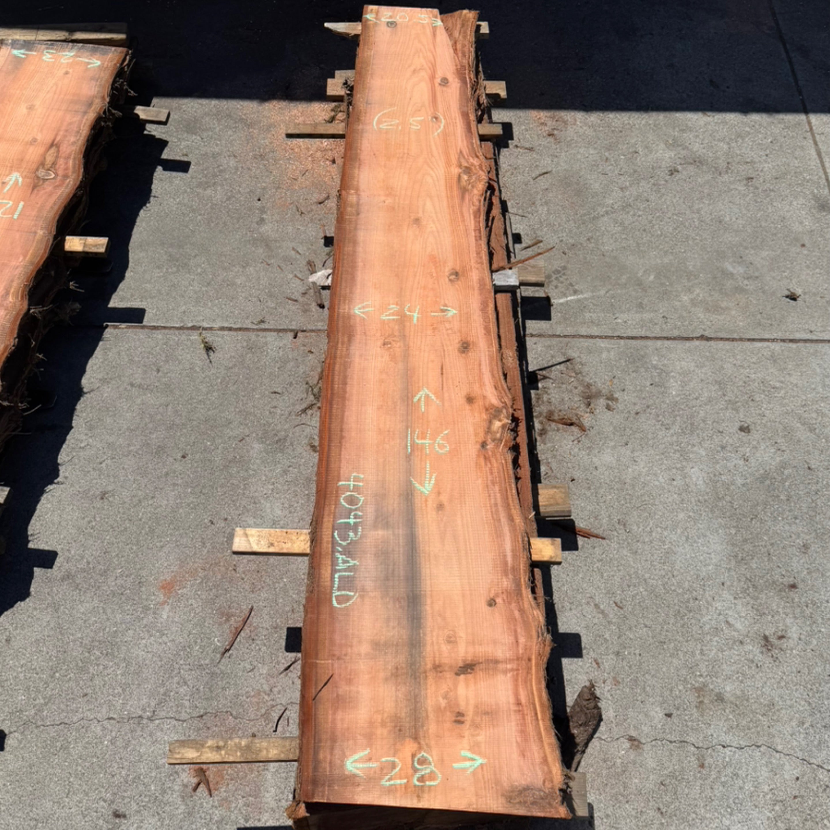 Redwood slab from CS Woods measuring 2" thick x 21"-22.5" wide x 173" long