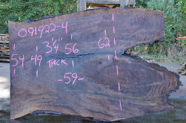 Black Walnut slab from Goby Walnut measuring 3.25" thick x 54"-49"-56"-62" wide x 59" long