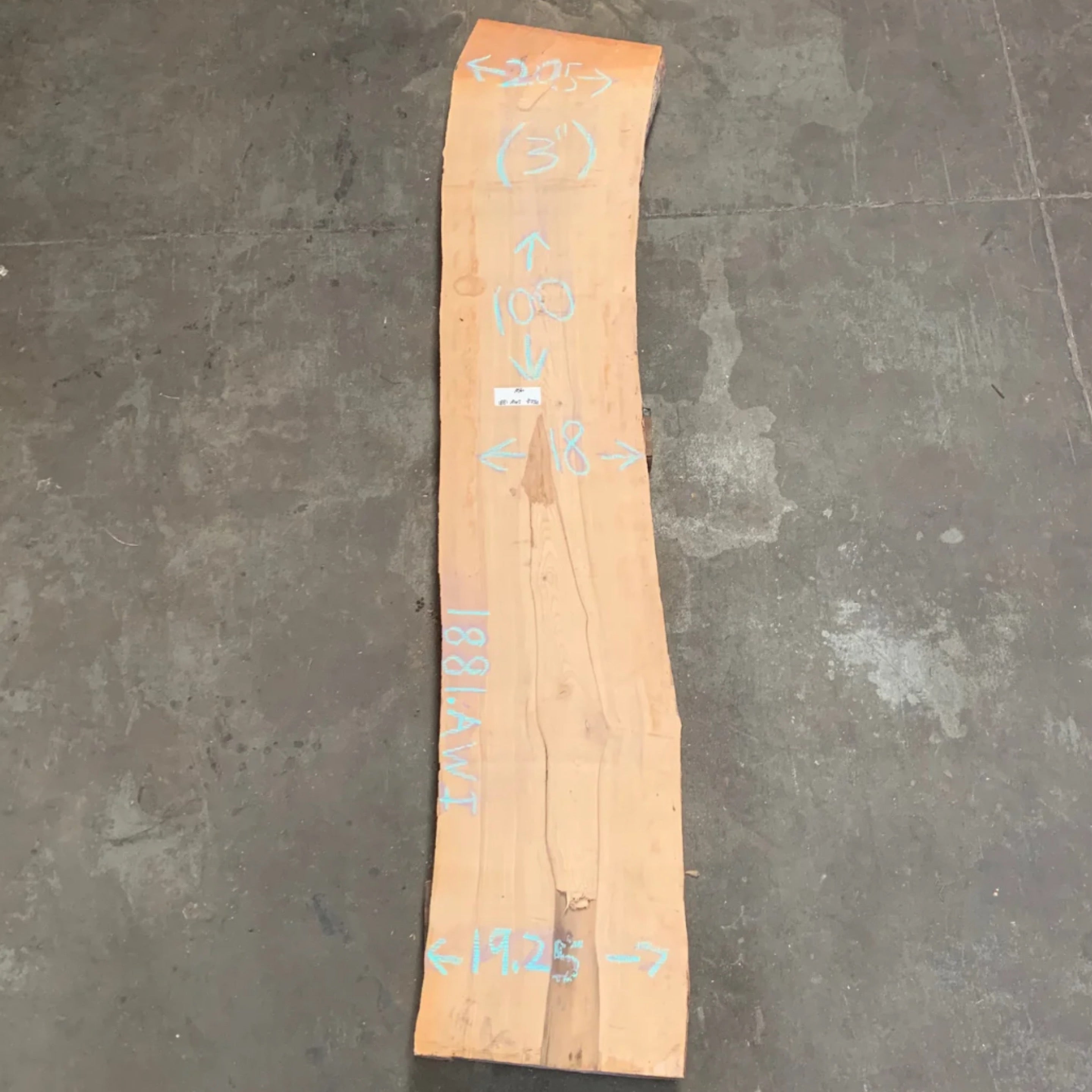 Ash slab from Peroba Reclaimed measuring 3" thick x 19.25"-18"-20.5" wide x 100" long