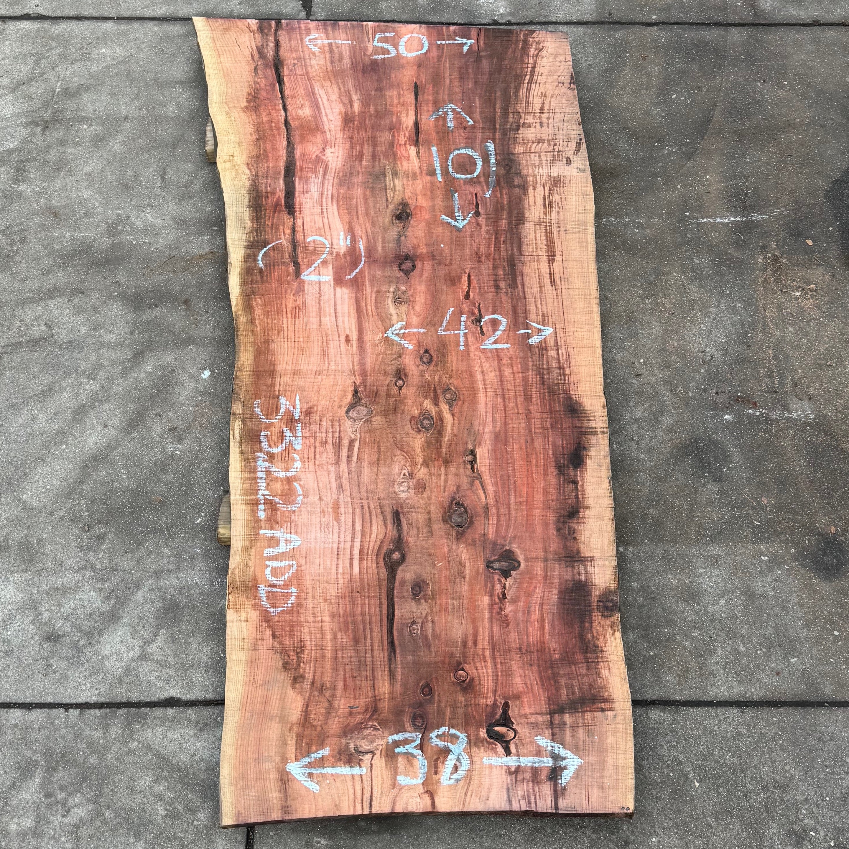 Giant Sequoia slab from Peroba Reclaimed measuring 2" thick x 50"-42"-38" wide x 101" long