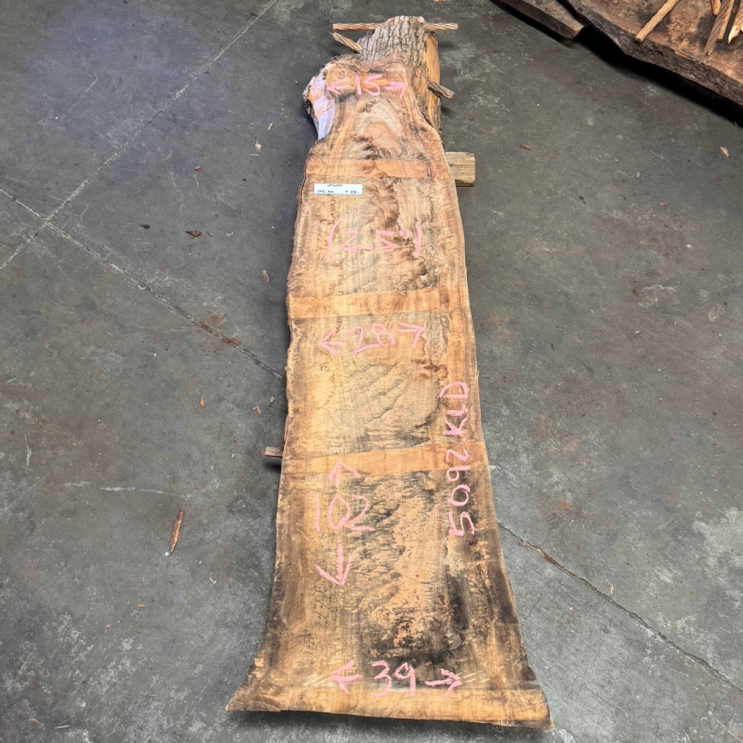 Maple slab from Goby Walnut measuring 2.5" thick x 36"-28"-31"-25"-41" wide x 180" long
