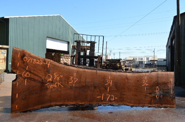 Black Walnut slab from Goby Walnut measuring 2.625" thick x 60"-37"-34"-36"-41" wide x 172" long
