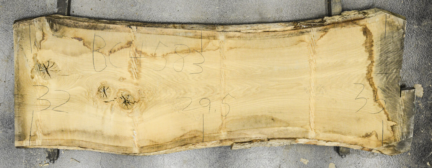 English Elm slab from Berkshire Products measuring 1-3/4" thick x 40"-29"-30" wide x 8' 4" long