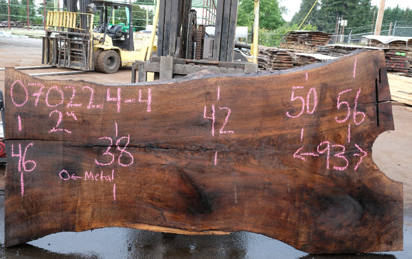 Bastogne slab from Goby Walnut measuring 2" thick x 46"-38"-42"-50"-56" wide x 93" long