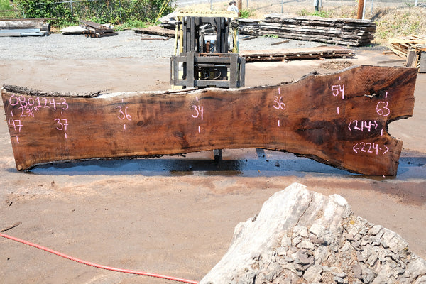 Redwood slab from Goby Walnut measuring 3" thick x 37"-33"-31"-35" wide x 107" long