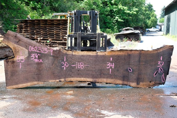 Black Walnut slab from Goby Walnut measuring 3.25" thick x 55"-30"-34"-37" wide x 168" long