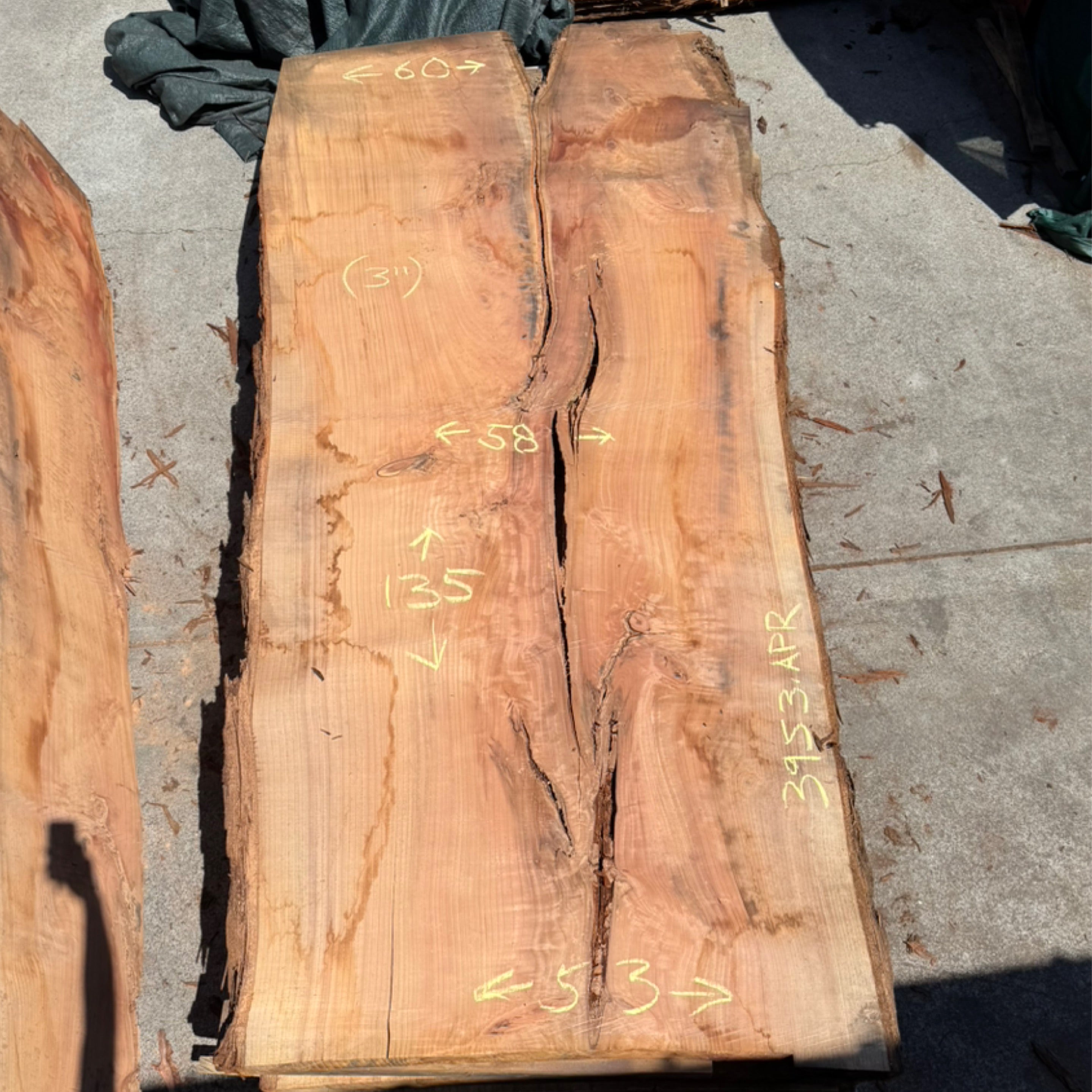 Redwood slab from Peroba Reclaimed measuring 3" thick x 60"-58"-53" wide x 135" long