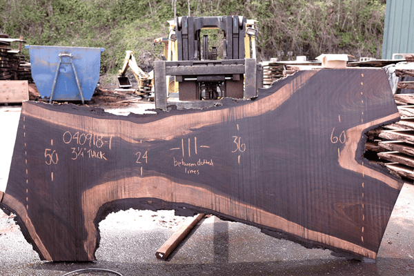 Pecan slab from Goby Walnut measuring 3" thick x 50"-43"-53"-62" wide x 115" long