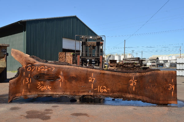 Black Walnut slab from Goby Walnut measuring 3" thick x 31"-31"-27"-25"-34" wide x 162" long