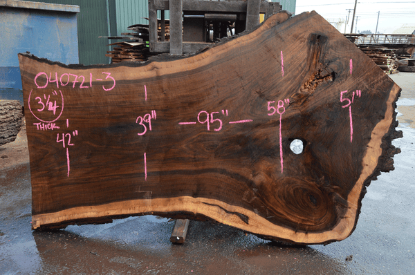 Black Walnut slab from Goby Walnut measuring 3.25" thick x 42"-39"-58"-51" wide x 95" long