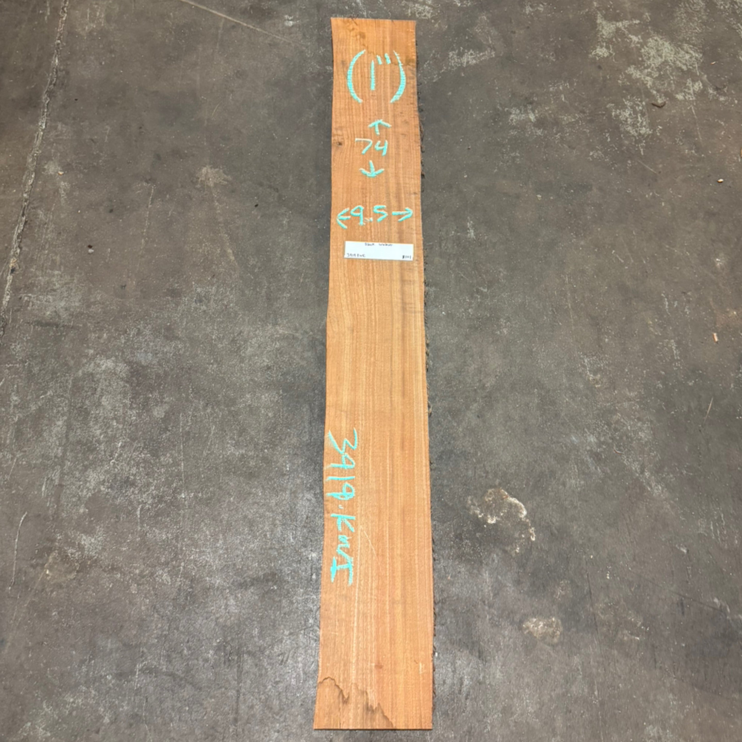 Black Walnut slab from Peroba Reclaimed measuring 1" thick x 9.5" wide x 74" long