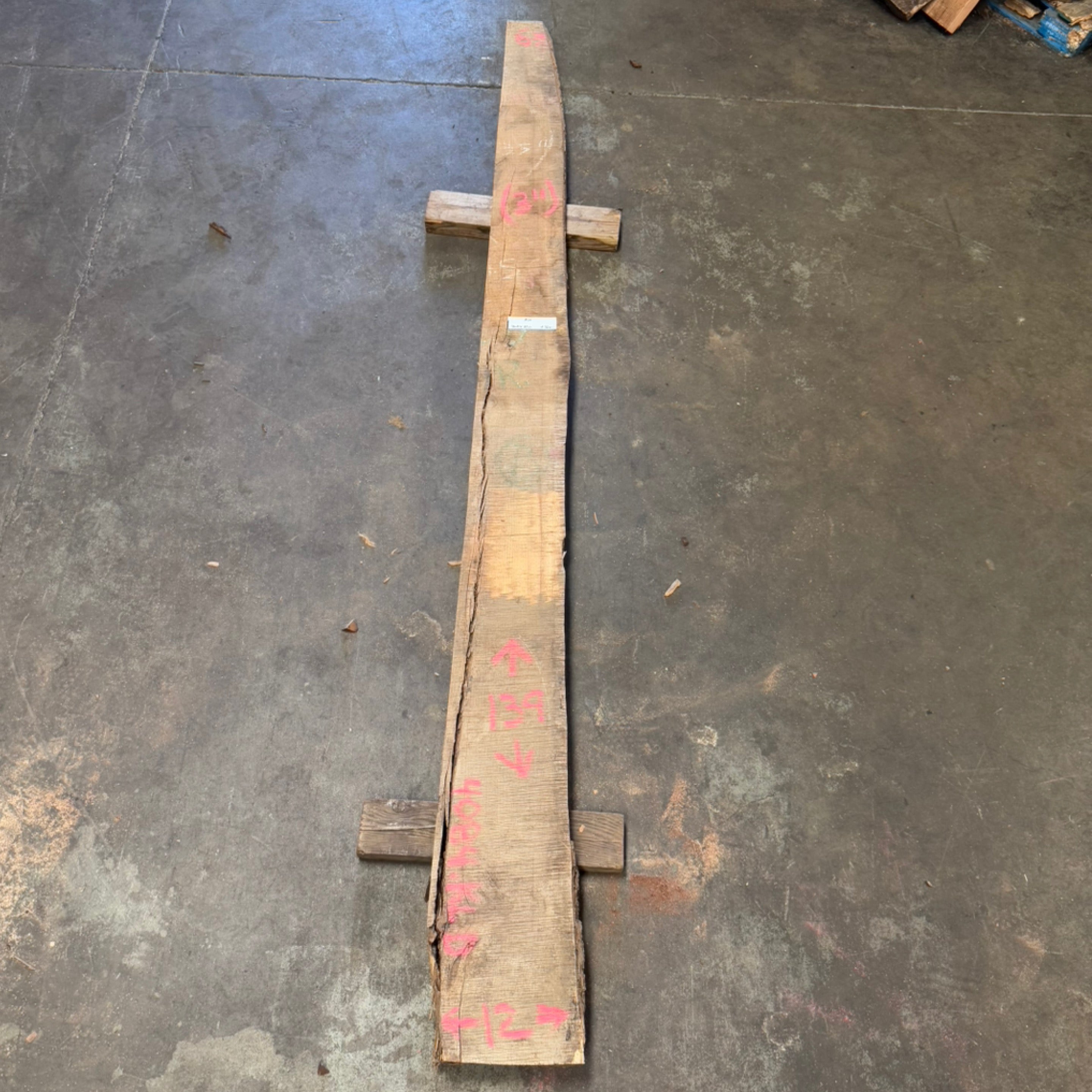 Ash slab from Peroba Reclaimed measuring 3" thick x 6"-12" wide x 139" long