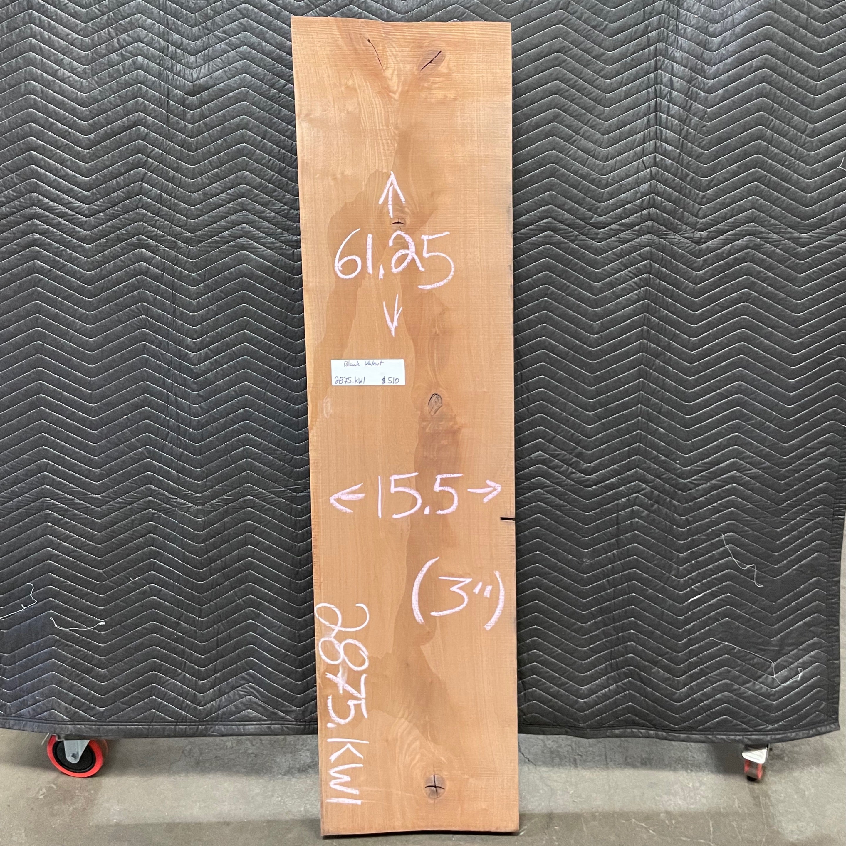 Black Walnut slab from Peroba Reclaimed measuring 3" thick x 15.5" wide x 61.25" long
