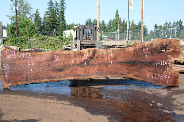 Redwood slab from Goby Walnut measuring 3" thick x 52"-57"-58"-62"-63" wide x 247" long