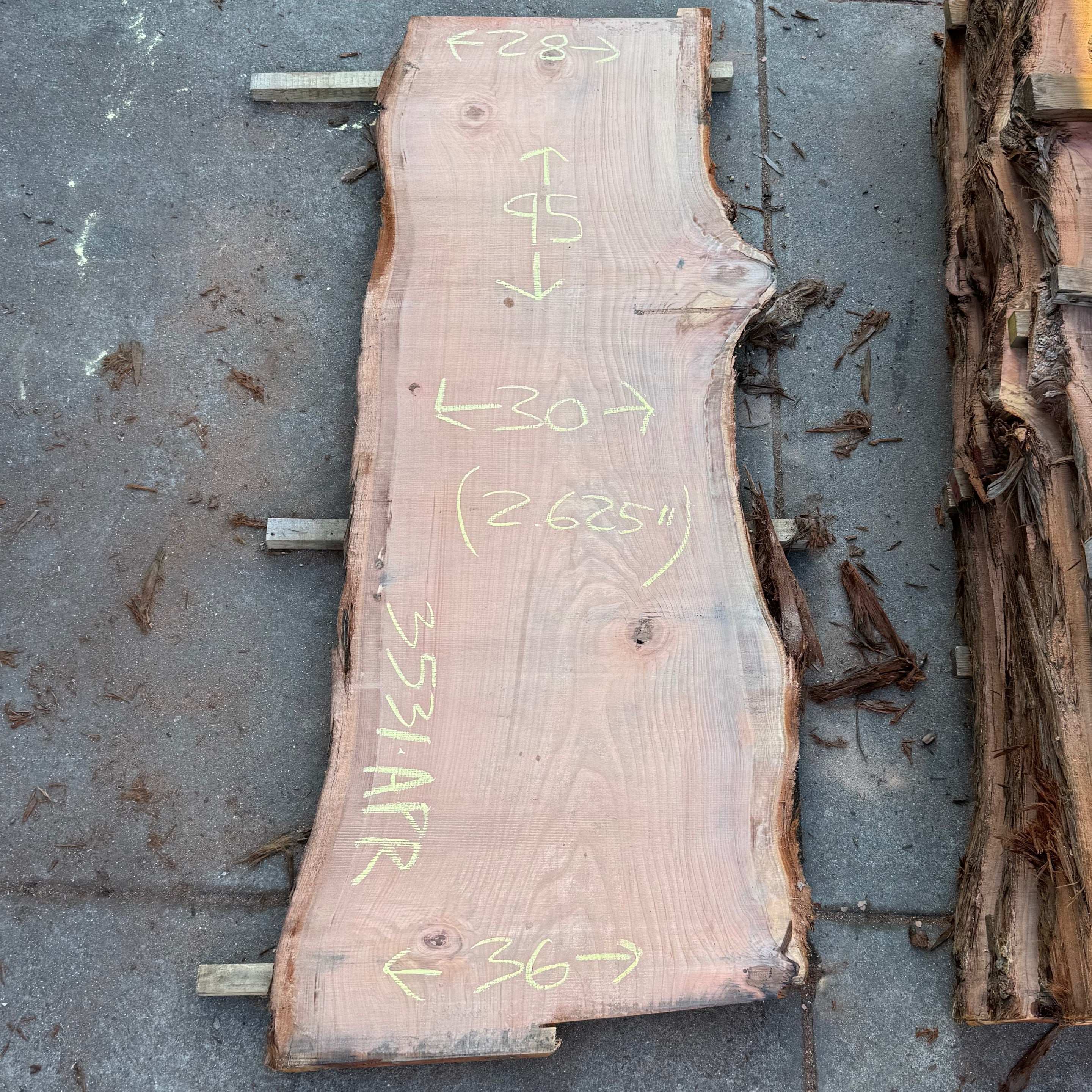 Redwood slab from Peroba Reclaimed measuring 2.625" thick x 28"-30"-36" wide x 95" long