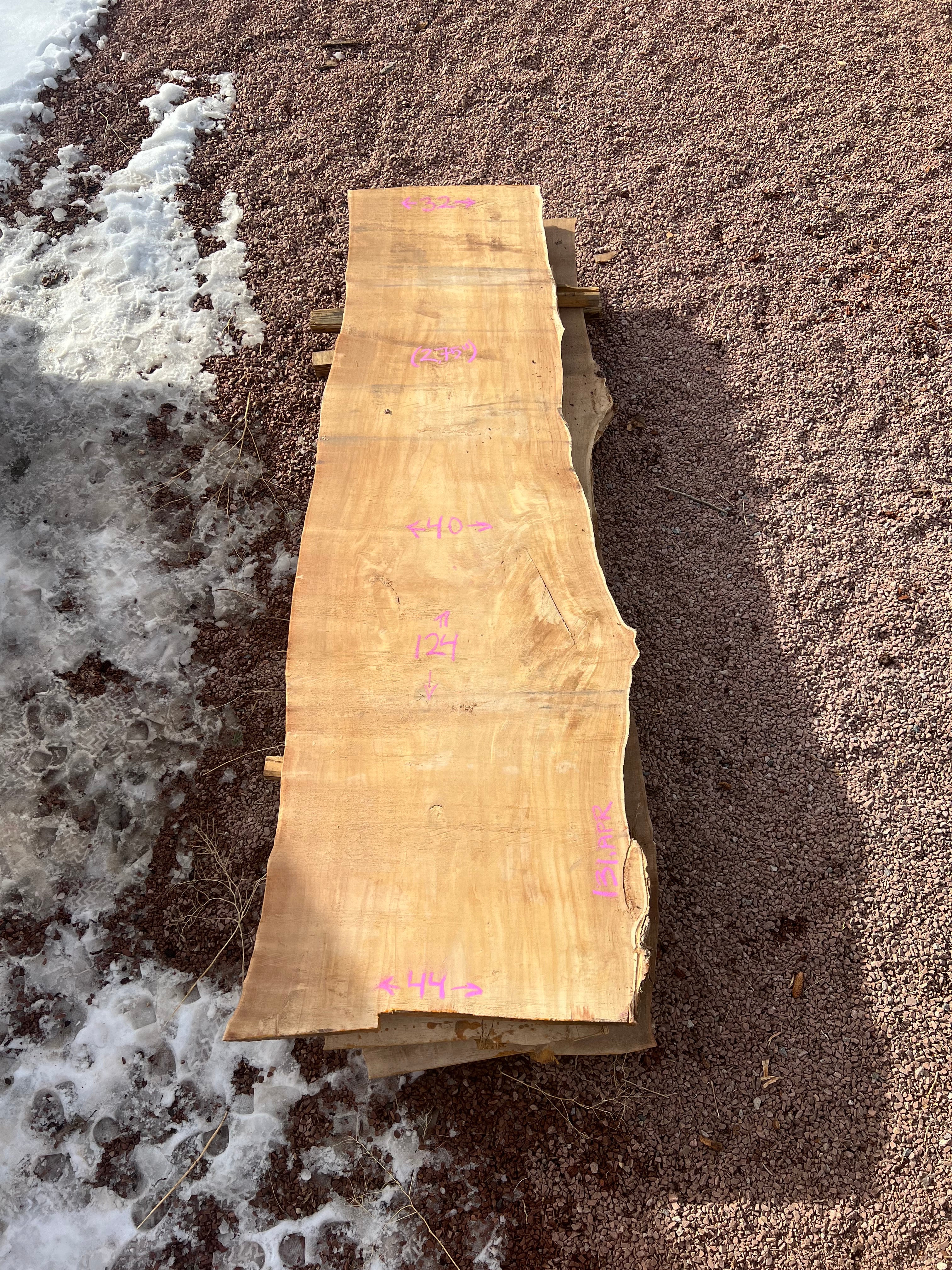 Silver Maple slab from Goby Walnut measuring 3.25" thick x 36"-40"-42"-38"-33" wide x 95" long