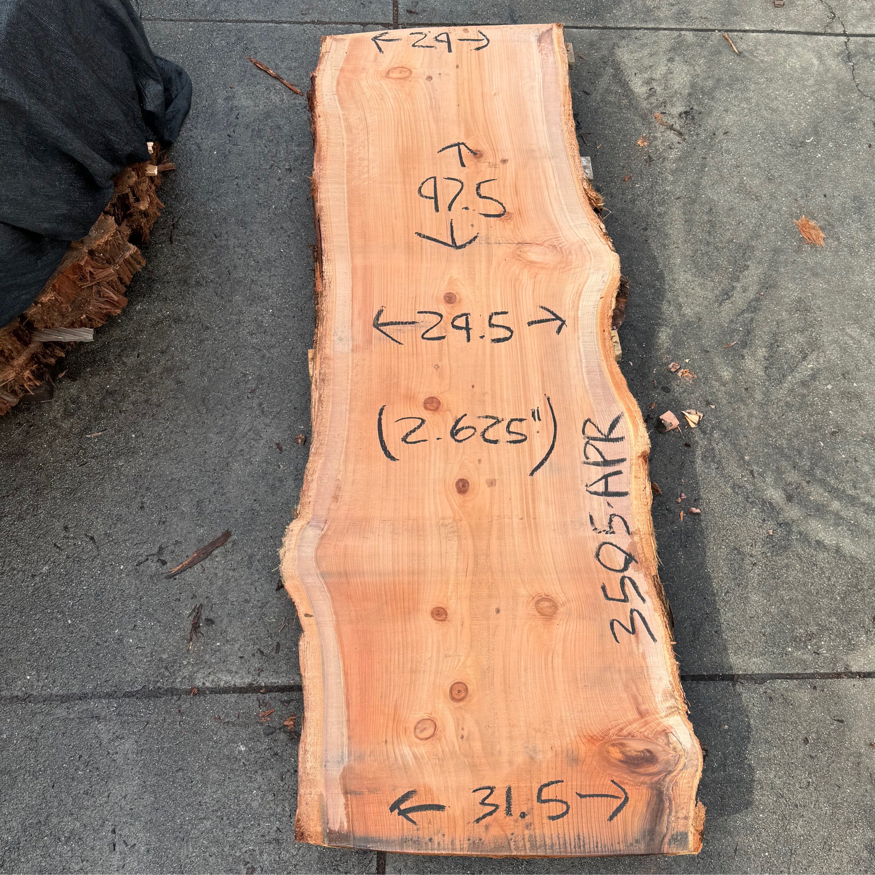 Redwood slab from Peroba Reclaimed measuring 2.625" thick x 29"-29.5"-31.5" wide x 97.5" long