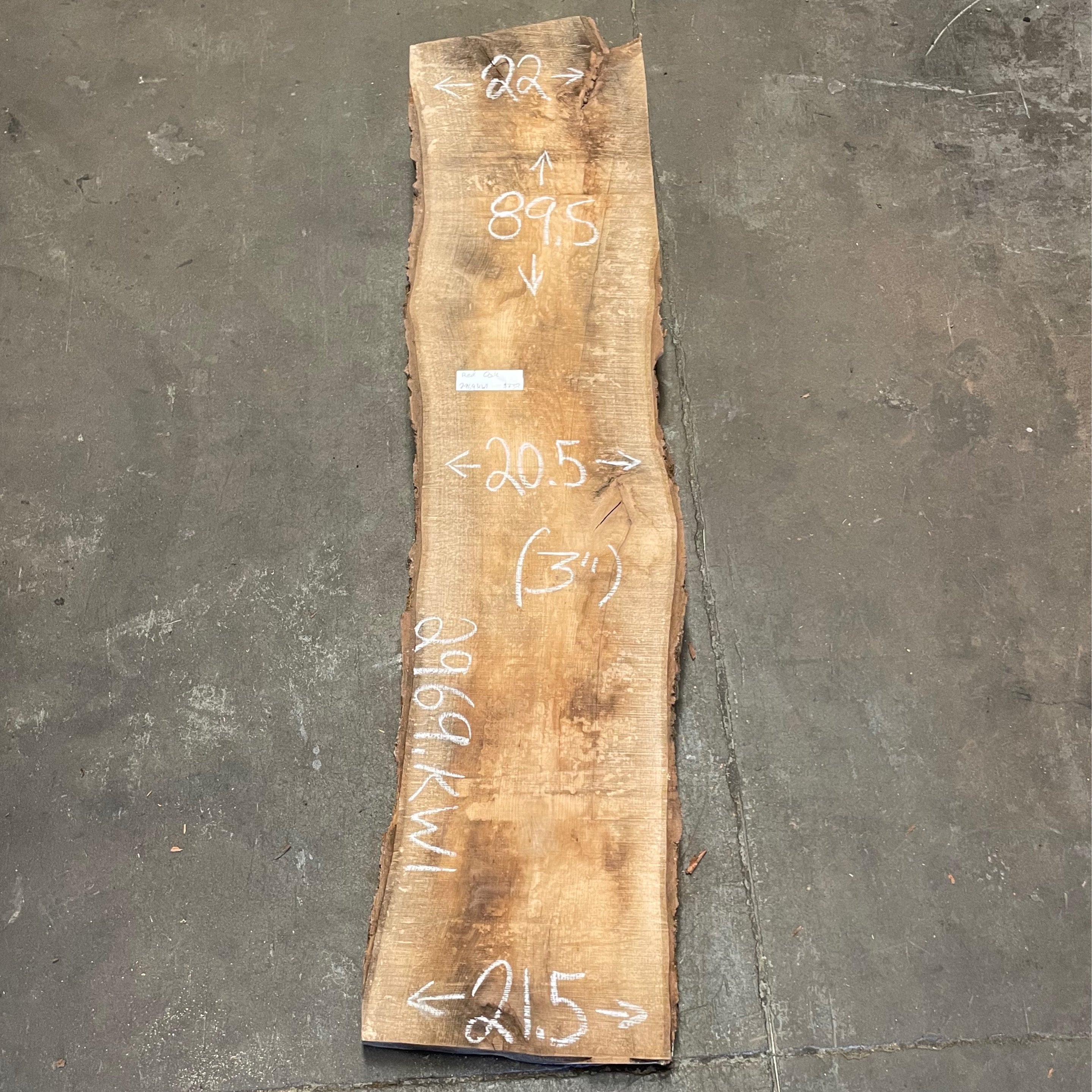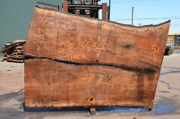 Claro Walnut slab from Peroba Reclaimed measuring 3" thick x 20.5"-22.5" wide x 47" long